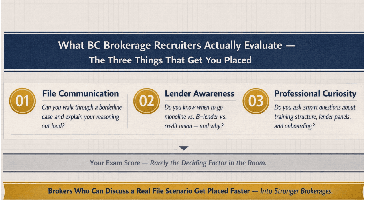 Your exam score is rarely the deciding factor. Brokers who can discuss a real life scenario in a recruitment conversation, not just confirm they passed a test, get placed faster and into stronger brokerages.